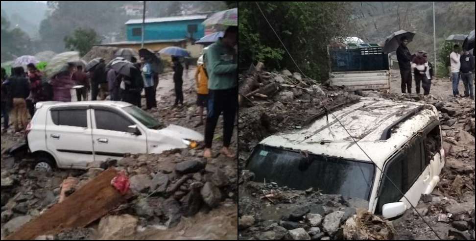 मलबे में कई गाड़ियां दब गई, और सड़क भी अवरुद्ध हो गई। गनीमत रही कि उस वक्त उन गाड़ियों में...