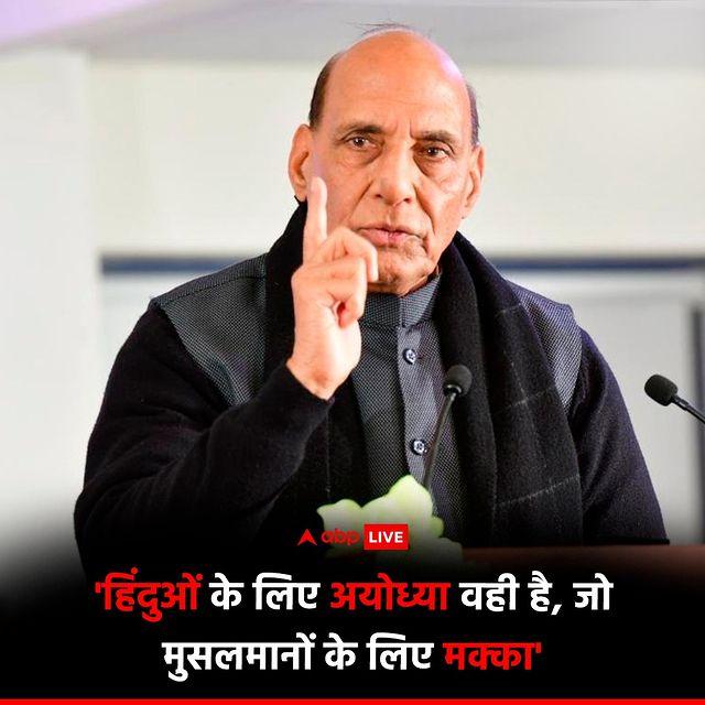केंद्रीय रक्षा मंत्री राजनाथ सिंह ने कहा कि अयोध्या नगरी को अंतत: वह सम्मान मिल गया है जिसकी वह हकदार थी और जो उसे आजादी के तुरंत बाद मिलना चाहिए था. बीजेपी) के नेता बलबीर पुंज की पुस्तक ‘ट्रिस्ट विद अयोध्या’ के विमोचन के अवसर पर रक्षा मंत्री सिंह ने कहा कि हिंदुओं के लिए अयोध्या वही है जो मुसलमानों के लिए मक्का है और ईसाइयों के लिए यरूशलम है. उन्होंने कहा कि वे चंद लोग हाशिए पर चले गए हैं जो भगवान राम के अस्तित्व पर सवाल उठाते थे. राम के बिना भारत की कल्पना नहीं की जा सकती.