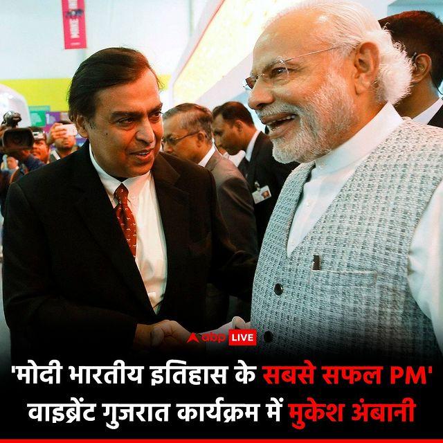 मोदी भारतीय इतिहास के सबसे सफल PM वाइब्रेट गुजरात कार्यक्रम में मुकेश अंबानी