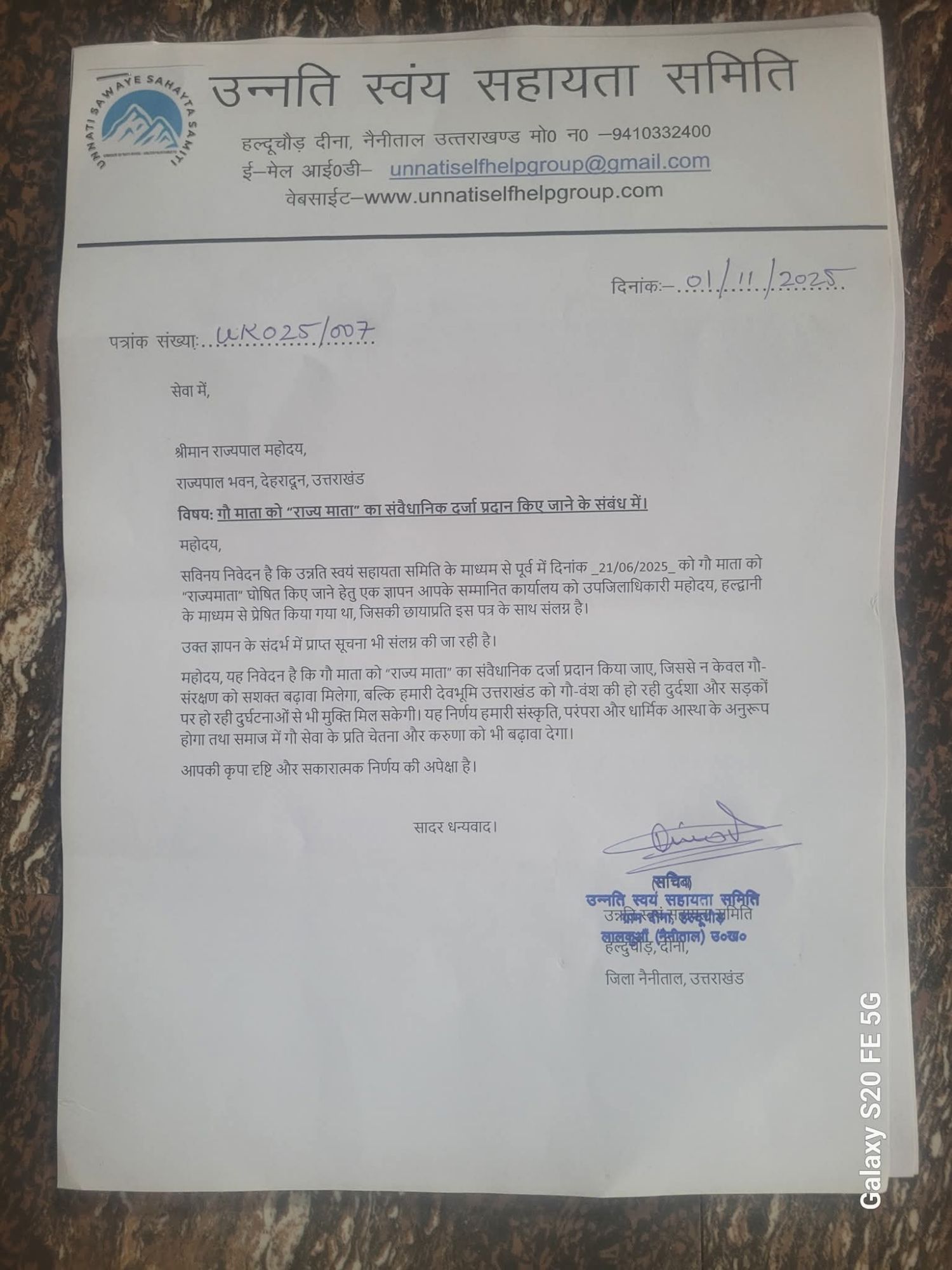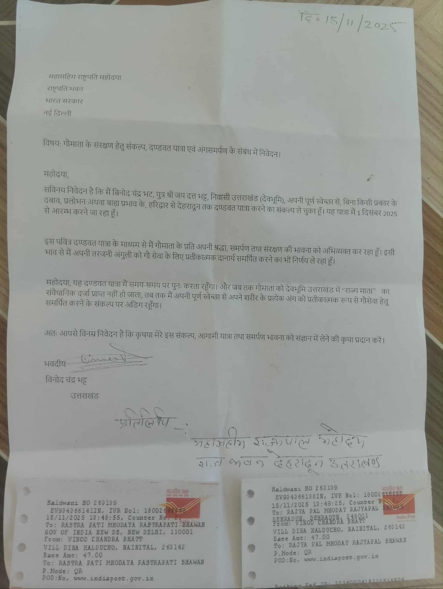 जिसके इन्होंने एक लेटर 21/06/2025 को माननीय राज्यपाल महादेव को भी गौ माता को राष्ट्रीय माता घोषित किए जाने के लिए ज्ञापन भेजा गया,,,,,1/11/2025 को उनके द्वारा गौ माता को राष्ट्रीय माता घोषित किए जाने के लिए माननीय राज्यपाल उत्तराखंड महोदय को ज्ञापन भेजा गया,,