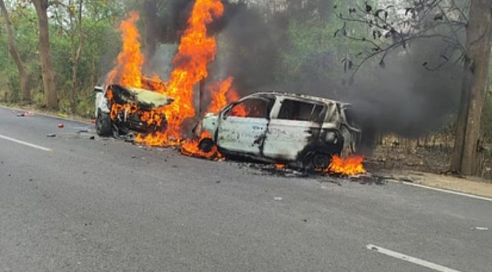 गौलापार मे बड़ा हादसा :-दो कारों की आपस में टक्कर के बाद लगी आग, एक की मौत, पांच लोग घायल