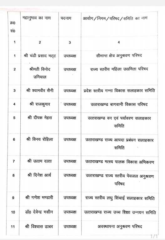 Big breaking :-धामी सरकार में 11 और नेताओं को दायित्वों की सौगात, भाजपा ने दायित्वधारियों की तीसरी सूची की जारी