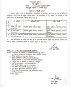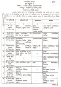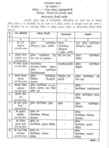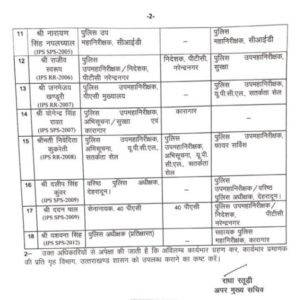 भारतीय पुलिस सेवा के निम्नलिखित अधिकारियों को उनके नाम के सम्मुख अंकित स्तम्भ-3 में उल्लिखित पद से, स्तम्भ-4 में अंकित पदभार से अवमुक्त करते हुए स्तम्भ-5 में उल्लिखित पद पर पदोन्नति / रिक्ति के सापेक्ष तत्काल प्रभाव से स्थानान्तरित / तैनात किया जाता है।