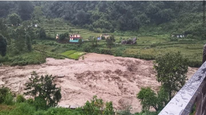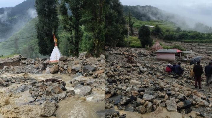 टिहरी में बादल फटा: भारी मात्रा में आया मलबा, भागीरथी का प्रवाह रुकने से बनी झील, दो मंदिर मलबे में दबे