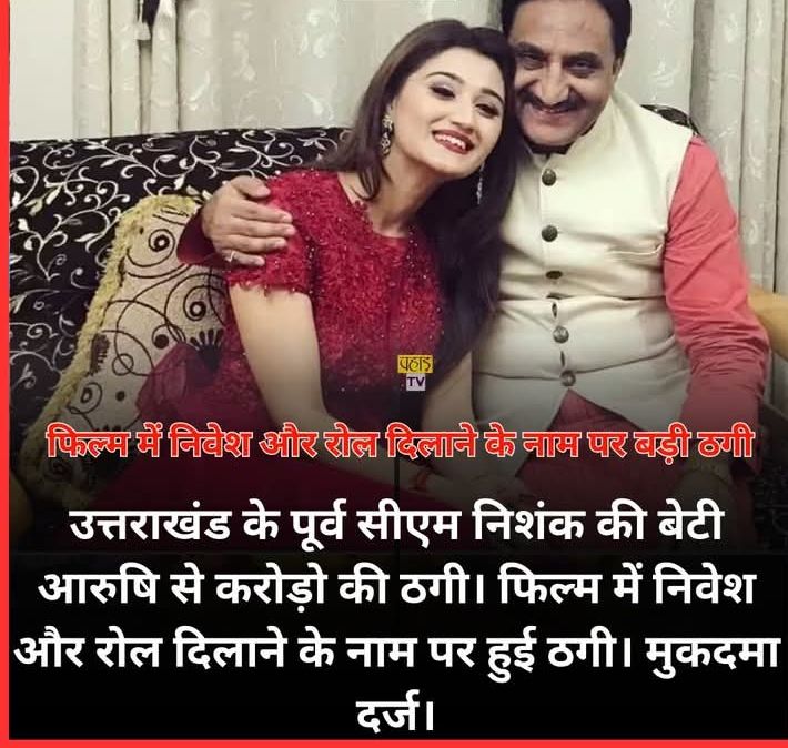 उत्तराखंड के पूर्व सीएम निशंक की बेटी आरुषि से करोड़ो की ठगी। फिल्म में निवेश और रोल दिलाने के नाम पर हुई ठगी। मुकदमा दर्ज।