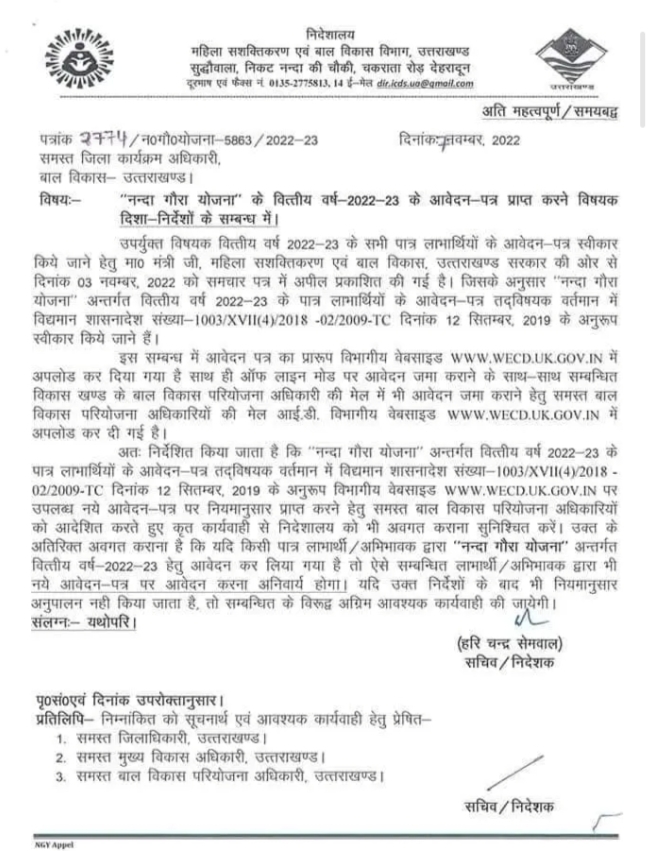 देहरादून-(बड़ी खबर) नंदा गौरा योजना को लेकर UPDATE, वर्ष 2022-23 के लिए आवेदन