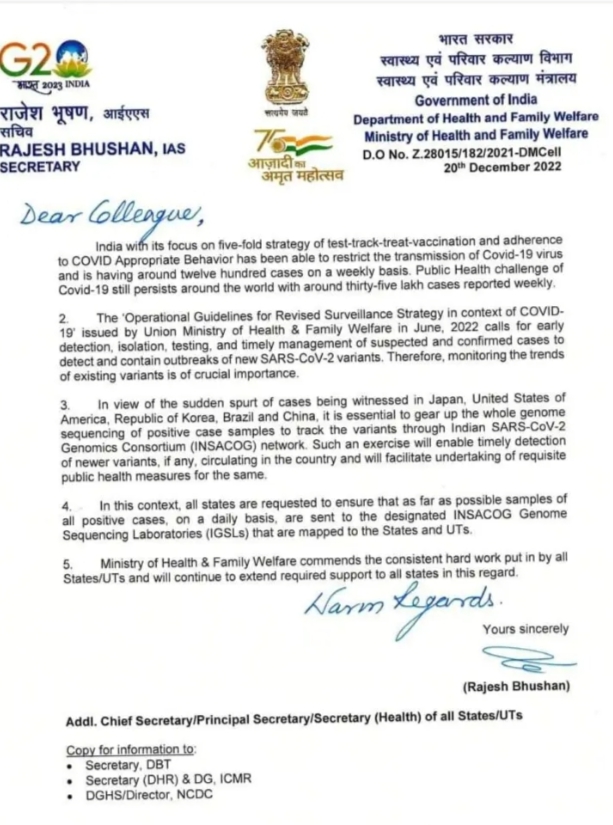 साथ ही नए वेरिएंट को लेकर जानकारी साझा किए जाने के साथ ही राज्यों को गाइडलाइंस का पालन करने को कहा गया है। गौरतलब है कि कोविड-19 की महामारी मार्च 2020 में शुरू हुई थी और उसके दूसरे चरण की विभीषिका को कोई भूल नहीं सकता।