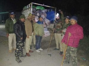 लालकुआं। प्रभागीय वनाधिकारी तराई पूर्वी वन प्रभाग हल्द्वानी श्री संदीप कुमार एवम् उप प्रभागीय वनाधिकारी गौला श्री अनिल जोशी के निर्देशों के अनुपालन में वन अपराधों पर नियंत्रण हेतु दिनांक 24/12/2023 को नगला किच्छा राजमार्ग के आनंदपुर मोड़ पर समय रात्रि लगभग 11.00 PM पर एक वाहन टाटा पिक अप रजिस्ट्रेशन नंबर UP 76 K 4054 से वन उपज कोकाट के 12 लठ्ठो का अवैध अभिवहन करने पर डौली रेंज लालकुआ में खड़ा कर सीज कर दिया गया है। वन क्षेत्राधिकारी डौली श्री नवीन पवार द्वारा बताए गया कि मुखबिर खास द्वारा दी गई सूचना पर 02 टीमों का गठन कर वन उपज का अवैध अभिवहन कर रहा उक्त वाहन को पकड़ कर सीज कर दिया गया है । भारतीय वन अधिनियम के तहत् कार्य वाही कर मुकदमा दर्ज कर दिया गया है।वन अपराध मे संलिप्त वन तस्करों की तलाश हेतु जांच की जा रही है वन अपराध में शामिल अभियुक्तों के नाम उजागर होने पर भारतीय वन अधिनियम के तहत् कठोर दंडात्मक कार्यवाही की जाएगी । टीम में मुख्यतया डौली रेंज से मनोज जोशी डिप्टी रेंजर दिनेश पंत, तारा पाठक वन दरोगा , शाहिद बेग, रोशन बहादुर,गंगनदीप सिंह आदि समलित रहें।