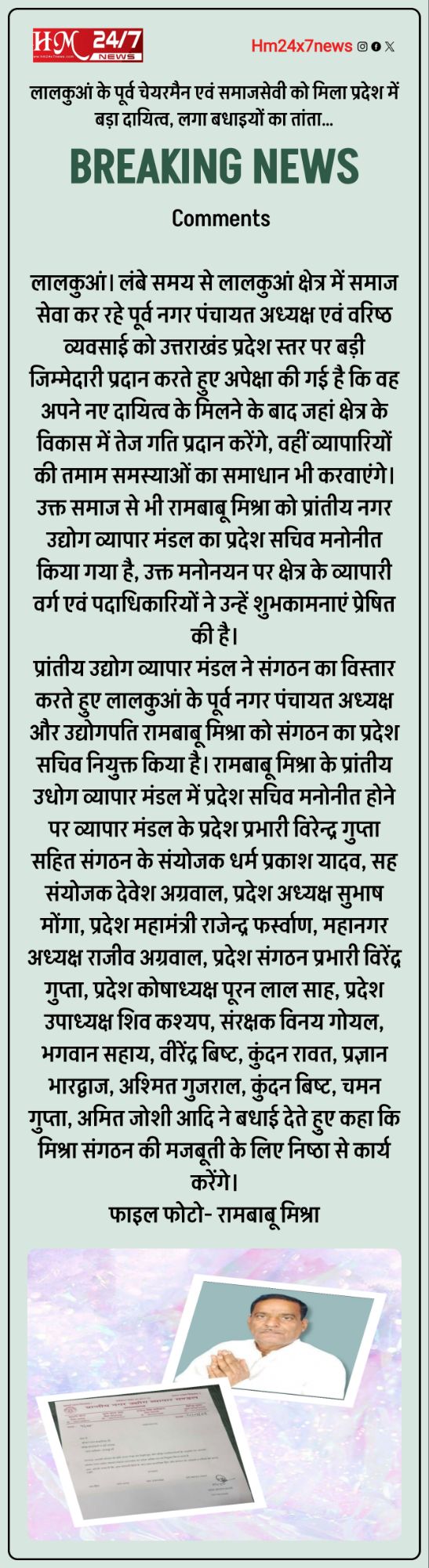 लालकुआं के पूर्व चेयरमैन एवं समाजसेवी को मिला प्रदेश में बड़ा दायित्व, लगा बधाइयों का तांता