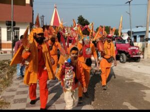 हल्दूचौड़ क्षेंत्र के शिव भक्त शिवरात्री की पूर्व संध्या पर आज हरिद्वार से गंगाजल जल लेकर हिरण बाबा शिव मंदिर दोलिया डी क्लास पहुंचें