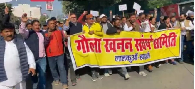 सैकड़ों की तादाद में जुलूस निकालते हुए गौला संघर्ष समिति के बैनर तले वाहन स्वामियों ने राज्य सरकार से एक राज्य एक रॉयल्टी किए जाने की मांग की साथ ही खनन व्यवसाय से जुड़े कई और समस्याओं से संबंधित मांगों को भी पूरा करने की चेतावनी दी। गौला खनन संघर्ष समिति के आंदोलन को समर्थन देने के लिए हल्द्वानी विधायक सुमित हृदयेश जुलूस में जमकर नारे लगाते हुए दिखाइ दिए।