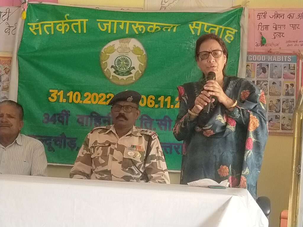 बताते चलें कि केंद्रीय सतर्कता आयोग स्वर्गीय सरदार बल्लभ भाई पटेल के जन्मदिन 31 अक्टूबर के उपलक्ष में सतर्कता जागरूकता अभियान मनाया जाता है, इस वर्ष सतर्कता जागरूकता अभियान के तहत लाल कुआं के हल्दुचौड बच्ची धर्मा ग्राम सभा में एक कार्यक्रम का आयोजन किया गया, जिसमें आइटीबीपी के अधिकारियों ने कहा कि यह सप्ताह देश की जनता को व अधिकारियों को जागरूक करने के लिए मनाया जाता है ,जिसमें प्रत्येक नागरिक की भागीदारी के माध्यम से सार्वजनिक जीवन में ईमानदारी तथा सत्य निष्ठा को बढ़ावा देने के लिए यह जागरूकता सप्ताह शपथ दिलाकर पूरी प्रतिबद्धता के साथ मनाया जाना चाहिए,