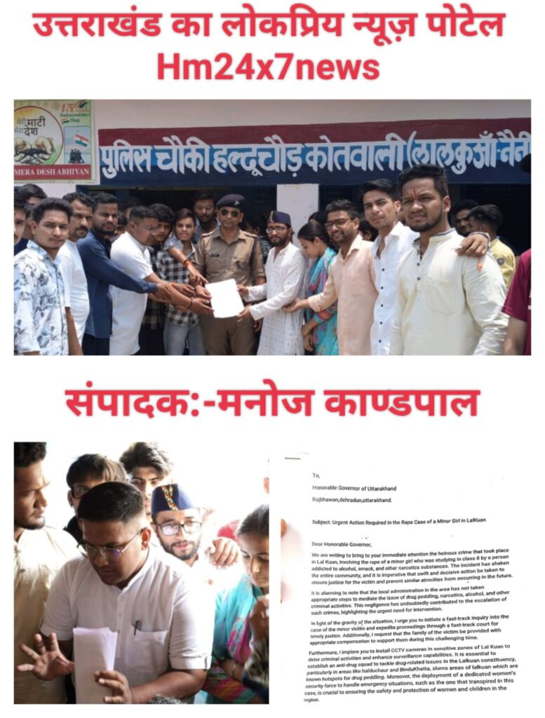 बिंदुखत्त्ता में कक्षा 8 की छात्रा के साथ हुए दुष्कर्म मामले को फास्ट्रेक कोर्ट भेजने व नशे के खिलाफ तत्काल कार्यवाही के लिए राज्यपाल के नाम हल्दुचौड़ चौकी से प्रेषित किया ज्ञापन ।हल्दुचौड़ ।