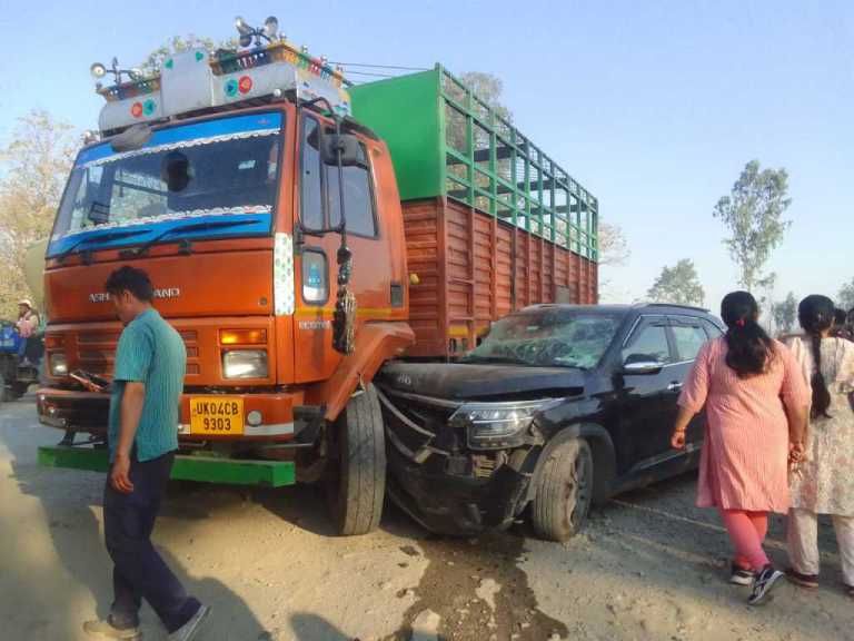 प्राप्त जानकारी के अनुसार हाईवे में हल्द्वानी की ओर से आ रही कार इंडियन ऑयल डिपो पर अचानक तेल डिपो की ओर बिना लाइट दिए अचानक मुड़ गए कैंटर के पीछे से आ रही किया कार ओवरटेक करने के चक्कर में कैंटर में जा घुसी। दुर्घटना इतनी तेज थी कि कार के एयरबैग खुल गए और उसमें सवार बच्चों सहित आधा दर्जन परिजनों को चोटें आ गयी, कार व्यवसायी मनोज अग्रवाल के पुत्र राघव चला रहे थे, पीछे की सीट में व्यवसायी की पत्नी सीमा एवं पुत्रवधू दिव्या, उनकी बेटी साक्षी और उसकी गोद में उनका एक वर्ष का पुत्र बैठे हुए थे, दुर्घटना में स सीमा और पुत्र वधू दिव्या गंभीर रूप से घायल हो गए जबकि अन्य को मामूली चोट आई है सभी घायलों को कोतवाली पुलिस एवं प्रत्यक्षदर्शियों द्वारा 108 एंबुलेंस द्वारा हल्द्वानी चिकित्सालय भिजवाया गया।