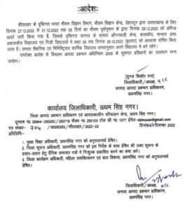 उत्तराखंड -(बड़ी खबर) जिला उधम सिंह नगर के जिलाधिकारी ने शीतलहर को देखते हुए छुट्टी के दिए निर्देश