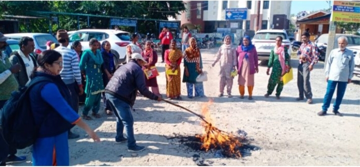 ग्रामीणों ने पेयजल समस्याओं को लेकर तहसील के बाहर सड़क पर क्षेत्रीय विधायक बंशीधर भगत का पुतला किया दहन ,,